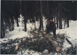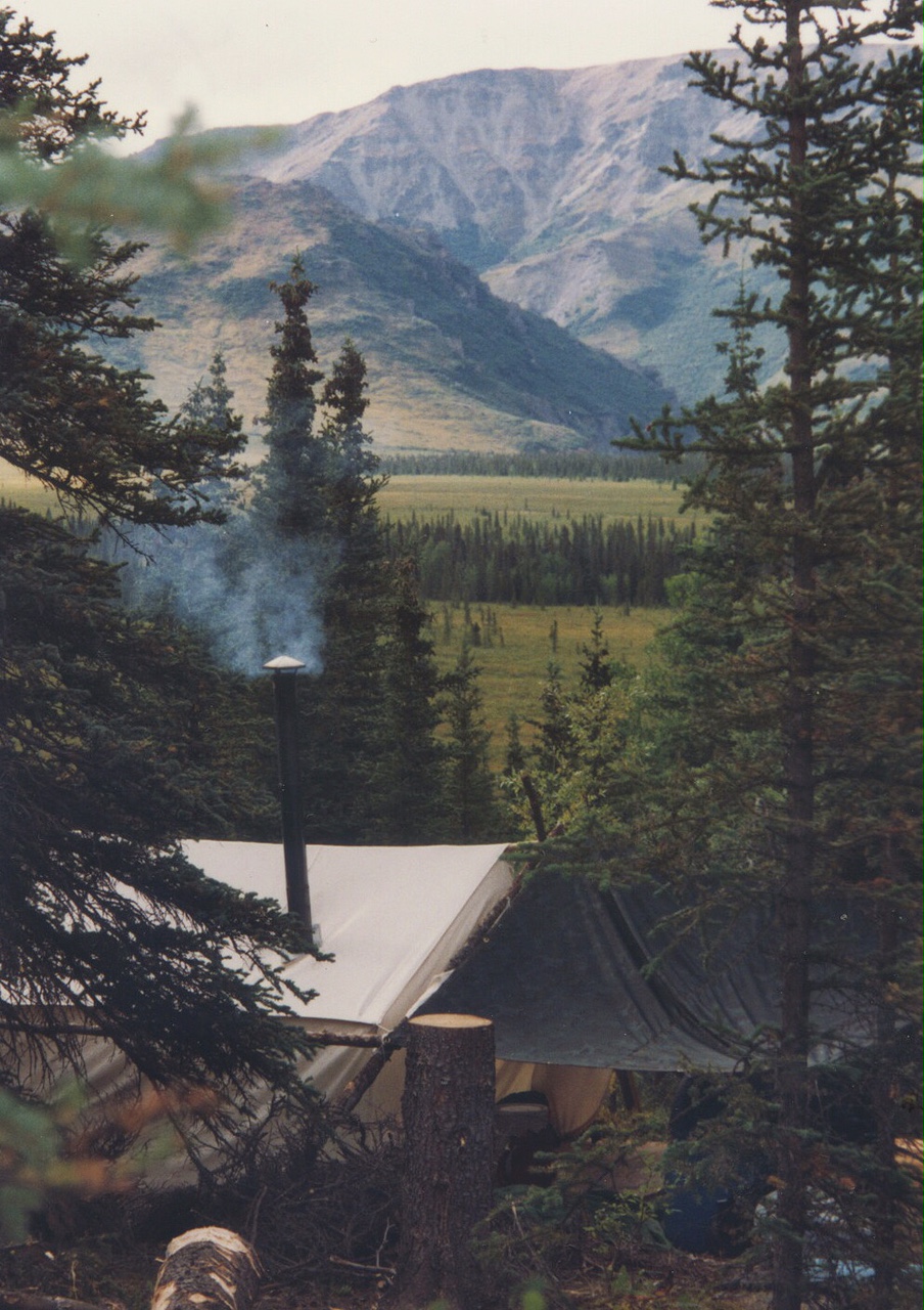 We kept tools to a minimum. A shovel came tumbling out of the door taped to a few pieces of wood for making a rough table to prepare food. Our canvas wall tent landed with a hard thud. We would cut spruce poles and get the heavy barrier up as soon as possible to grant us some shelter from the elements. Axes, bow saws with extra blades, and 12-inch spikes rained down from the heavens. Our new airtight woodstove landed with only a few dents. We scampered to pick up each implement that would be crucial to our work. We’d decided against using power tools. It would be grueling cutting down the trees using just single person bow saws, but I couldn’t bring myself to unleash the sound of a chainsaw in this ancient valley without history of human habitation. There was an archeological dig across the river that had proven to be the remains of a nomadic hunter-gatherer party from over 12,000 years ago. Those eons of silence weighed on me as I imagined the offensive whine of a gasoline engine where forever there had been only the sounds of the wind and water, and only recently the occasional hum of over-flying bush pilots.