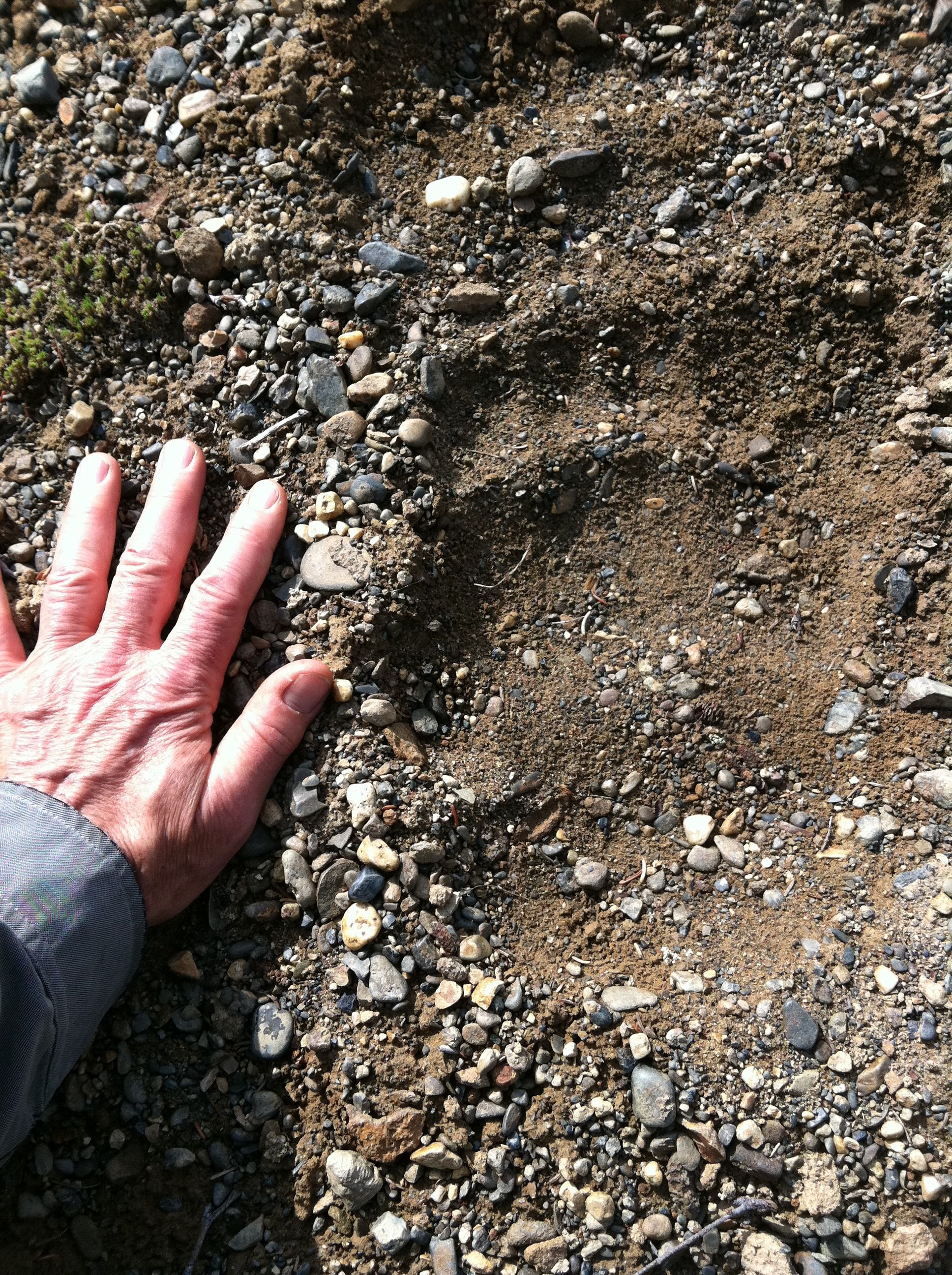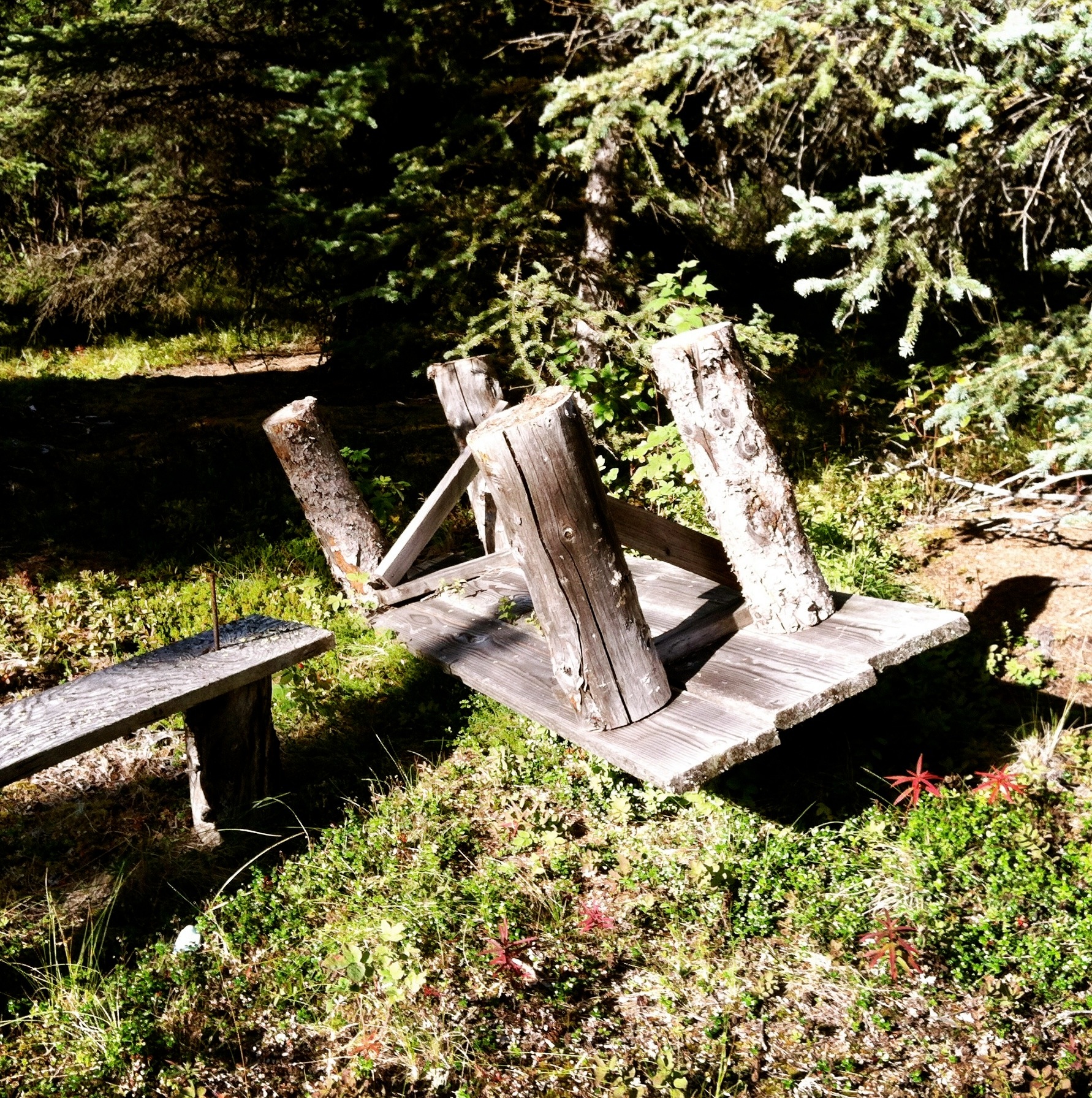 Even though the cabin stands smack in the middle of grizzly territory, I’ve never laid eyes on one nearby. We did once spot a sleek, small black bear on a ridge not far from us, but I’ve seen grizzlies only from a helicopter on the way in to the land, and those were a good distance away, out in the park. My sense is that the bears know when the cabin is occupied, and prefer to keep their distance. I also understand I would be stupid to take that for granted, and I don’t even walk to the outhouse or the compost hole without keen awareness and bear spray in my back pocket.